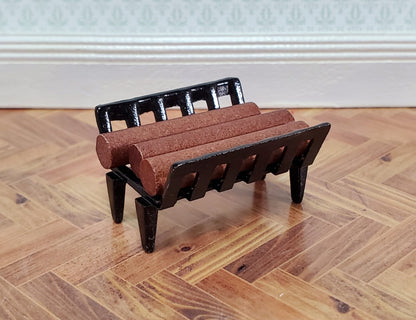 Dollhouse Fireplace Log Grate with Logs Rack Small Black Metal 1:12 Scale Miniatures