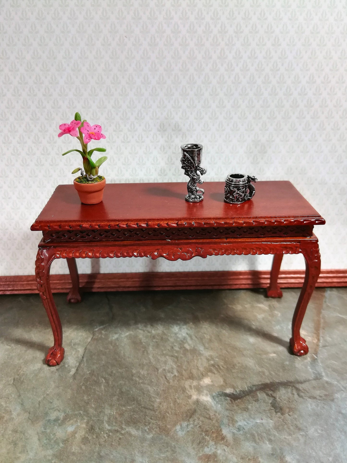 Dollhouse Miniature Metal Dragon Stein Mug Silver Color 1:12 Scale Decoration